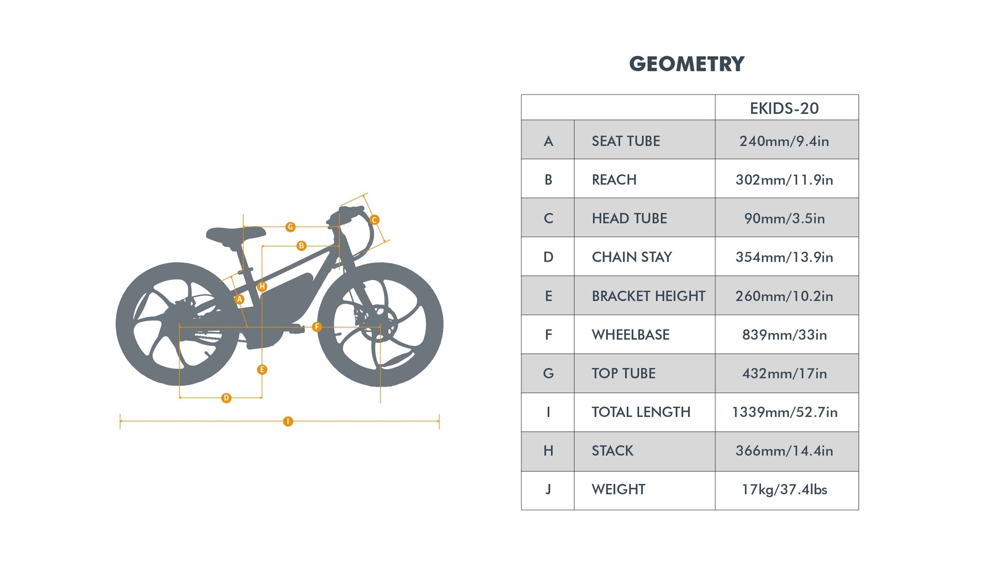 The 20" EKIDS BIKE Specifications
