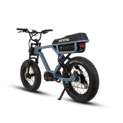 - Wheels & tires: 20-inch black alloy rims wrapped in CST 20x4.0 fat tires for stability and float over loose surfaces.